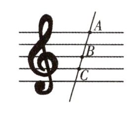 1. (跨学科)如图,五线谱是由等距离、等长度的五条平行横线组成的,同一条直线上的三个点$ A $,$ B $,$ C $都在横线上. 若线段$ A B = 3 $,则线段$ B C $的长是(
