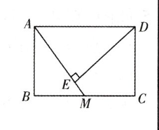 【变式2】如图,在矩形 $ ABCD $ 中,$ DE \perp AM $ 于点 $ E $。求证:$ \triangle ADE \backsim \triangle MAB $。