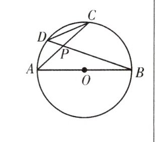 【例题3】如图,$ AB $ 为 $ \odot O $ 的直径,弦 $ AC $,$ BD $ 相交于点 $ P $,连接 $ CD $。求证:$ \triangle ABP \backsim \triangle DCP $。