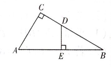 $\because DE \perp AB$,$\therefore \angle DEB = \angle ACB = 90^{\circ}$。又$\because \angle B = \angle B$,$\therefore \triangle DEB \backsim \triangle ACB$。
