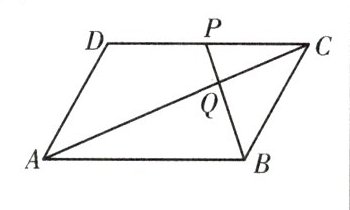 【变式3】如图,在$□ ABCD$中,$P是CD$的中点,$AC与PB交于点Q$. 若$\triangle ABQ的周长为8$,面积为$6$,求$\triangle CPQ$的周长和面积.