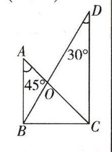 4. 将一副三角板按如图所示的位置叠放,则$\triangle AOB与\triangle DOC$的面积之比等于(