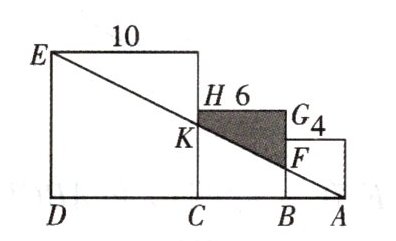 5. (2023·广东改编)边长分别为$10$,$6$,$4$的三个正方形拼接在一起,它们的底边在同一直线上.