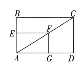 3. (人教九下 P43)如图,四边形 ABCD 是矩形,点 F 在对角线 AC 上运动,$EF// BC,FG// CD,$四边形 AEFG 和矩形 ABCD 一直保持相似吗?证明你的结论.