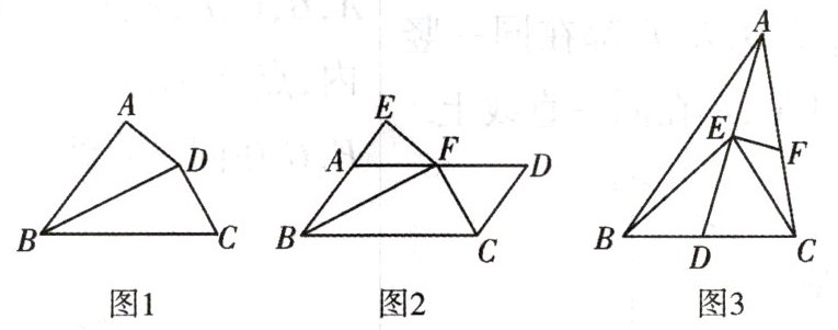 (3)如图 3,在$△ABC$中,D 是 BC 上一点,连接 AD,点 E,F 分别在 AD,AC 上,连接 BE,CE,EF.若$DE= DC,∠BEC= ∠AEF,BE= 12,EF= 5,\frac {CE}{BC}= \frac {2}{3}$,求$\frac {AF}{FC}$的值.