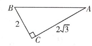 解:在$Rt△ABC$中,由勾股定理,得$AB^{2}=AC^{2}+BC^{2}$,代入解得$AB=4$,
