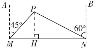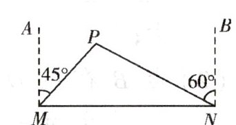 解:由题意$\angle AMP = 45^{\circ}$,$\angle BNP = 60^{\circ}$,
