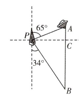 (海里)。在$Rt\triangle BPC$中,$\angle B = 34^{\circ}$,