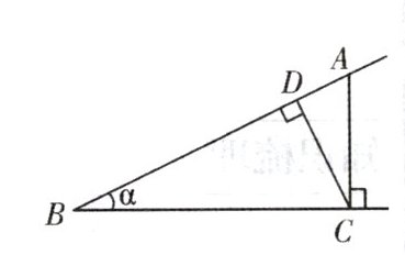 【变式1】如图,$A为\angle\alpha$边上的任意一点,过点$A作AC\perp BC于点C$,过点$C作CD\perp AB于点D$,下列用线段比表示$\cos\alpha$的值,错误的是(