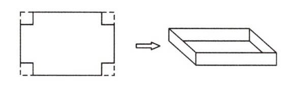 3. 如图,在长为8cm,宽为4cm的矩形的四个角上截去四个全等的小正方形,折成一个底面积为$12cm^2$的无盖长方体,求截去的小正方形的边长.