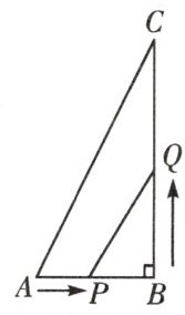 5. 如图,在△ABC中,∠B = 90°,AB = 6cm,BC = 12cm.点P以1cm/s的速度从点A开始沿AB边向点B移动,同时点Q以2cm/s的速度从点B开始沿BC边向点C移动.当点P到达点B时,P,Q两点停止运动,设点P的运动时间为t s.解答下列问题: