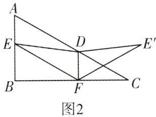 (3)如图2,将$\triangle DEF$沿$DF$翻折得到$\triangle DFE'$,设$\triangle DFE'$与$\triangle ABC$重叠的面积为$S\ \text{cm}^{2}$,求直接写出$S$与$t$的函数解析式及$S$的最大值.
