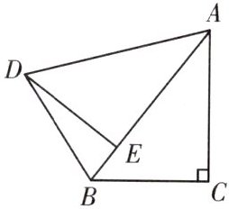 由旋转的性质,得$∠AED = ∠C = 90^{\circ}$,$AE = AC = 8$,$DE = BC = 6$,