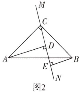 (3)小亮将直线MN绕点C旋转到图2的位置,发现DE,AD,BE之间存在着一个新的数量关系,请直接写出这一数量关系.