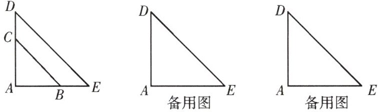 8.如图,$△ABC,△AED$都为等腰直角三角形,$∠BAC=∠EAD=90^{\circ }$,点B,C分别在线段AE,AD上,$AC=\frac {1}{2}DE$,将$△ABC$绕点A顺时针旋转角$α(0^{\circ }<α<360^{\circ })$,若以A,B,C,D四点为顶点的四边形为平行四边形,求α的度数.