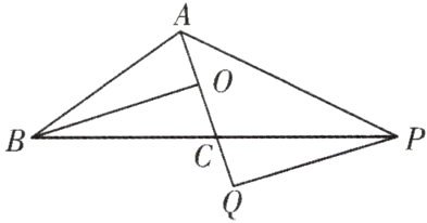 7.如图,BO是等腰三角形ABC的底边中线,$AC=2$,$AB=4$,$\triangle PQC$与$\triangle BOC$关于点C成中心对称,连接AP,求AP的长.