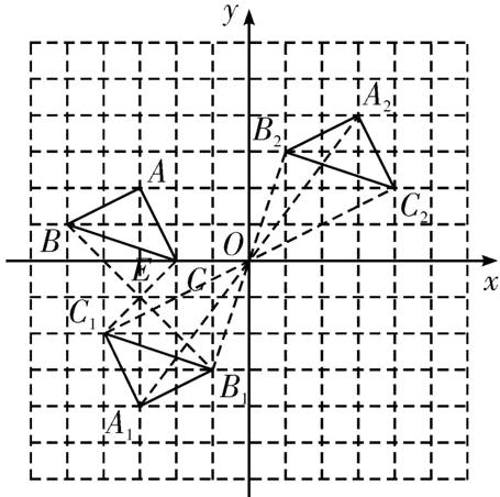 (2)画出与△A₁B₁C₁关于点O成中心对称的△A₂B₂C₂.