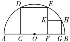 (2)在正方形CDEF的右侧有一正方形FGHK,点G在AB上,点H在半圆O上,点K在EF上.若正方形CDEF的边长为2,求正方形FGHK的面积.