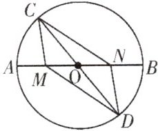 6.如图,AB,CD为$\odot O$的两条直径,点M,N分别为AO,BO的中点,求证:四边形CMDN为平行四边形.