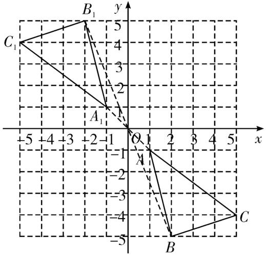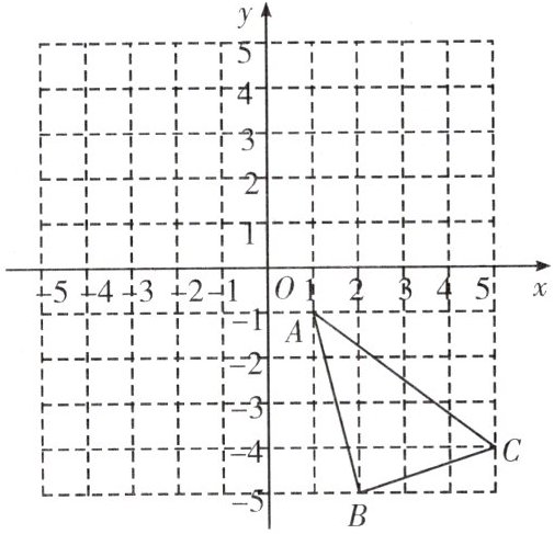 1. 如图,在平面直角坐标系中,$△ABC$三个顶点的坐标分别为$A(1,-1)$,$B(2,-5)$,$C(5,-4)$.