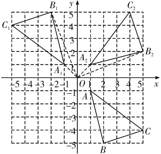 (2)画出将$△A_{1}B_{1}C_{1}$绕原点$O$顺时针旋转$90^{\circ}$后得到的$△A_{2}B_{2}C_{2}$,写出点$B_{2}$的坐标;