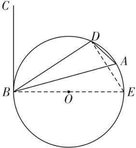 证明:如图,作直径$$BE$$,连接$$DE$$,