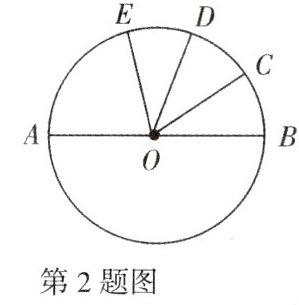2. 如图,$AB$是$\odot O$的直径,$\overset{\frown}{BC}=\overset{\frown}{CD}=\overset{\frown}{DE}$,$∠AOE = 84^{\circ}$,则$∠BOC$的度数为______