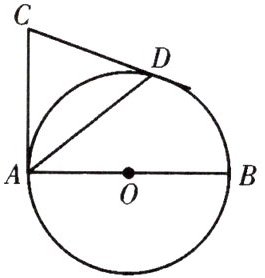 15.(例9)如图,CA,CD是$\odot O$的切线,切点分别为A,D,AB是$\odot O$的直径,连接AD.