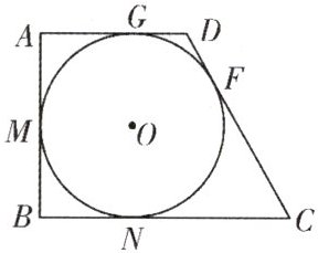 (5)如图,$\odot O$为直角梯形ABCD的内切圆,M,N,F,G为切点,$∠A=∠B=90^{\circ },AD=3,BC=6$,求$\odot O$的半径;