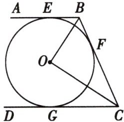16.(例10)如图,AB,BC,CD分别与$\odot O$相切于E,F,G三点,且$AB// CD.$
