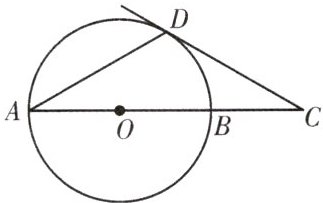 4.如图,$\odot O$的直径$AB=6cm$,D为$\odot O$上一点,过点D的切线交AB的延长线于点C,$AD=CD$,求: