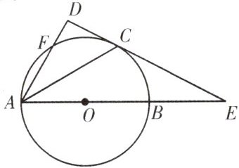 5.如图,AB是$\odot O$的直径,直线CD与$\odot O$相切于点C,且与AB的延长线交于点E,点C是$\widehat {BF}$的中点,求证:$AD⊥CD.$