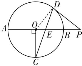 6.如图,AB为$\odot O$的直径,点C,D为$\odot O$上两点,连接OC,CD,CD交AB于点E,且$OC⊥AB$,过点D作$\odot O$的切线DP,交AB的延长线于点P.
