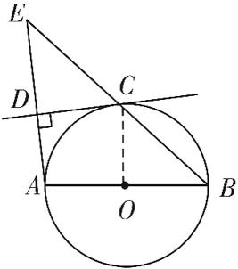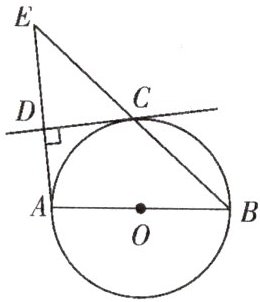 4. 如图,$AB$为$\odot O$的直径,点$C$在$\odot O$上,$AD$与过点$C$的切线互相垂直,垂足为点$D$.连接$BC$并延长,交$AD$的延长线于点$E$. 求证:$AE = AB$.