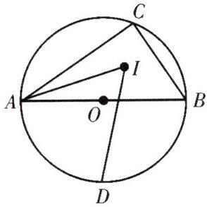 18.如图,AB为$\odot O$的直径,C为$\odot O$上一点,点I为$△ABC$的内心,$AC=8,BC=6.$