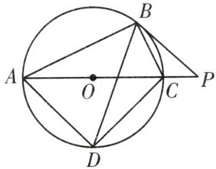 3.(2025·广西一模)如图,四边形ABCD内接于⊙O,AC是⊙O的直径,BD平分$ \angle ABC $,点P在AC延长线上,$ \angle PBC = \angle BDC $.