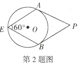 2. 如图,PA,PB分别切⊙O于点A,B,E是⊙O上一点,且∠AEB = 60°,则∠P =