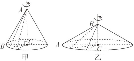 11.在数学活动课上,小莹将含30°角的直角三角尺分别以两个直角边为轴旋转一周,得到甲、乙两个圆锥,并用作图软件画出示意图。小亮观察后说:“甲、乙圆锥的侧面都是由三角尺的斜边AB旋转得到,所以它们的侧面积相等。”你认为小亮的说法正确吗?请说明理由。