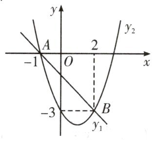 ∵抛物线y₂=ax²+bx-3过点A(-1,0),B(2,-3),
