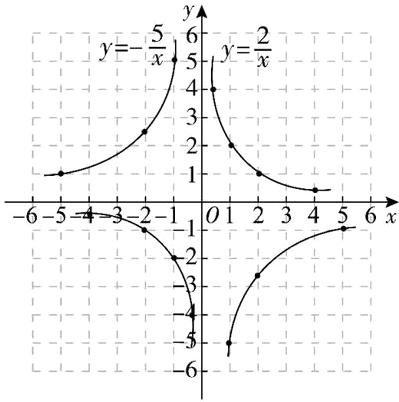 5. 在同一平面直角坐标系中,分别画出函数$y=\frac {2}{x}$和$y=-\frac {5}{x}$的图象.(不写画法)