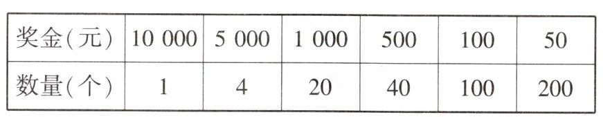 ∴ 有 10 万种结果,奖金不少于 1000 元的彩票共有 1 + 4 + 20 = 25(张).