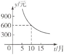 5. 某品牌计算机春节期间搞活动,规定每台计算机售价0.7万元,首次付款后每个月应还的钱数y(单位:元)与还钱月数t的关系如图所示,其中y与t(单位:月)是反比例关系.