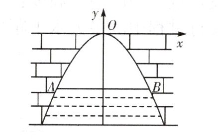 2.如图,某涵洞的截面是抛物线形,在图中建立适当的坐标系,已知抛物线的解析式为$y= -\frac {1}{4}x^{2}$,当涵洞水面宽AB为12米时,则水面到涵洞顶点O的距离= ____
