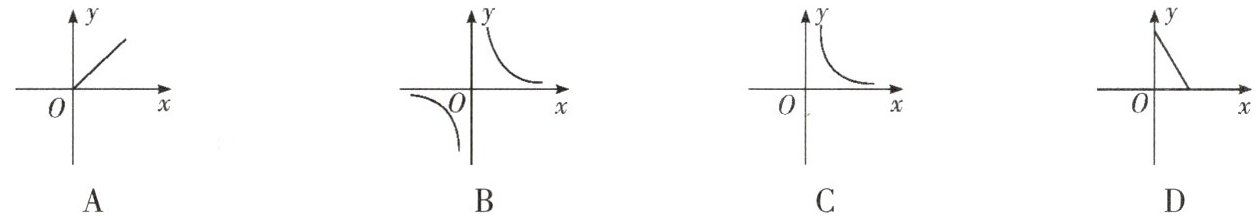 2. 矩形的长为$x$,宽为$y$,面积为9,则$y$与$x$之间的函数关系用图象表示大致为 (
