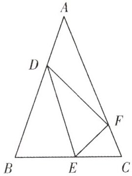3.如图,在$△ABC$中,$AB=AC$,点E在边BC上移动(点E不与点B,C重合),满足$∠DEF=∠B$,且点D,F分别在边AB,AC上.