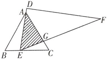 7.如图,在等边$△ABC$中,$AB=6$,将一直角三角尺DEF的$60^{\circ }$角的顶点E在边BC上移动(不与B,C重合),移动过程中,始终满足直角边DE经过点A,斜边EF交AC于点G.