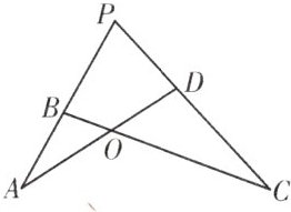 2.如图,AD,BC交于点O,P为AB,CD延长线的交点,且$PA\cdot PB=PC\cdot PD$.求证:$△PAD\backsim △PCB.$
