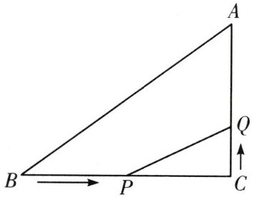 6.如图,在$△ABC$中,$∠C=90^{\circ },BC=8cm,4AC-3BC=0$,点P从点B出发,沿$B→C$方向以2 cm/s的速度移动,点Q从点C出发,沿$C→A$方向以1 cm/s的速度移动,若点P,Q分别从点B,C同时出发$(0<t≤4)$,经过多少秒时,$△CPQ$与$△CBA$相似?