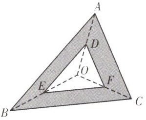 8.如图,$△DEF$是由$△ABC$经过位似变换得到的,点O是位似中心,点D,E,F分别是OA,OB,OC的中点,若$△DEF$与$△ABC$所围的图形(阴影部分)的面积为$30cm^{2}$,则$△DEF$的面积为________.