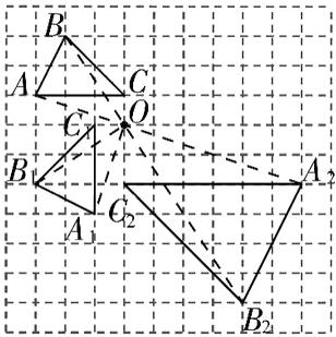 (2)以点O为位似中心,在网格中作与$△ABC$位似的$△A_{2}B_{2}C_{2}$,使$△ABC$与$△A_{2}B_{2}C_{2}$的相似比为$\frac {1}{2}$;